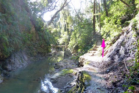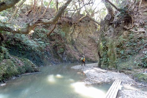 ミニ渓谷の雰囲気を楽しみながら沢筋を歩く♪ |