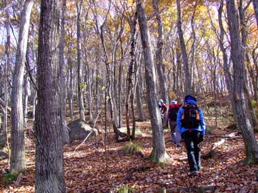 このルートはコナラの樹林帯歩きで展望は無いが、緩い上りで「二の岩」「休憩ベンチ」など通過し汗をかく間