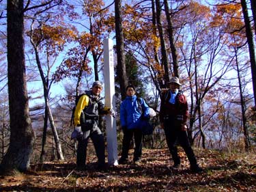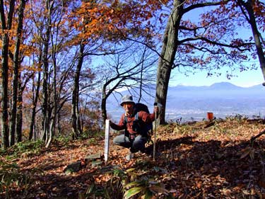 三等三角点が置かれており、雁田山より27.3m高いがナラやカラ松に囲まれており展望は無い。