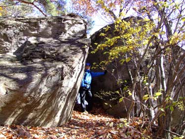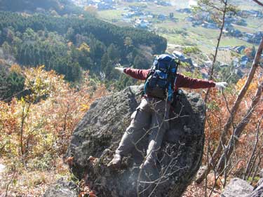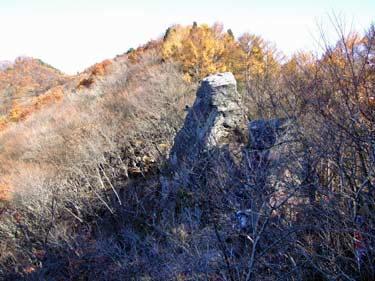 姥と孫が石になったといわれる伝説の姥石を右に巻いてひと登りで岩ゴロの小ピークだ。