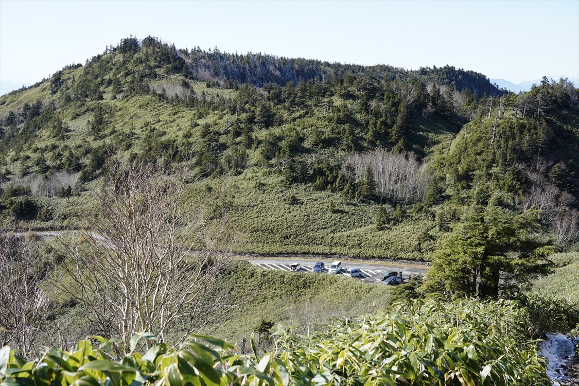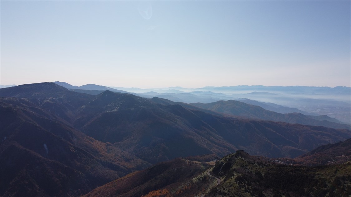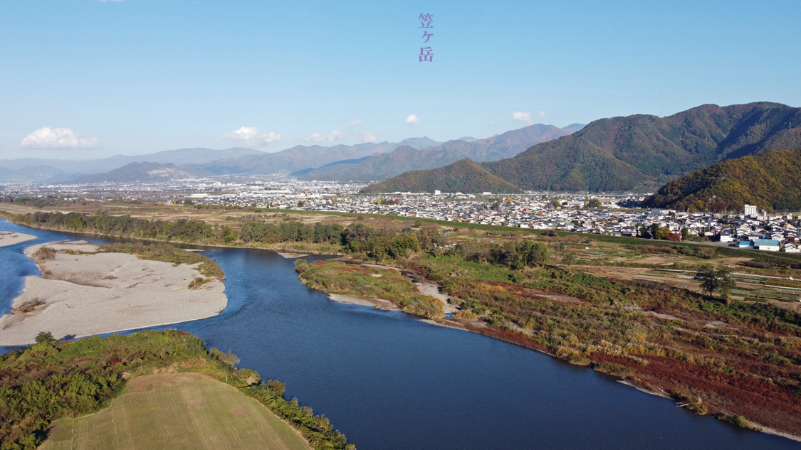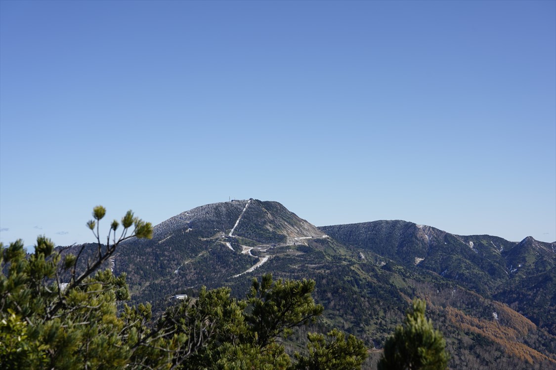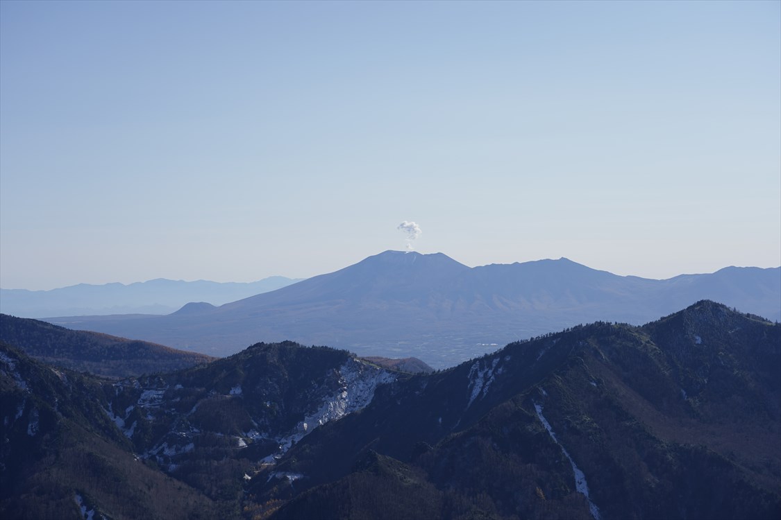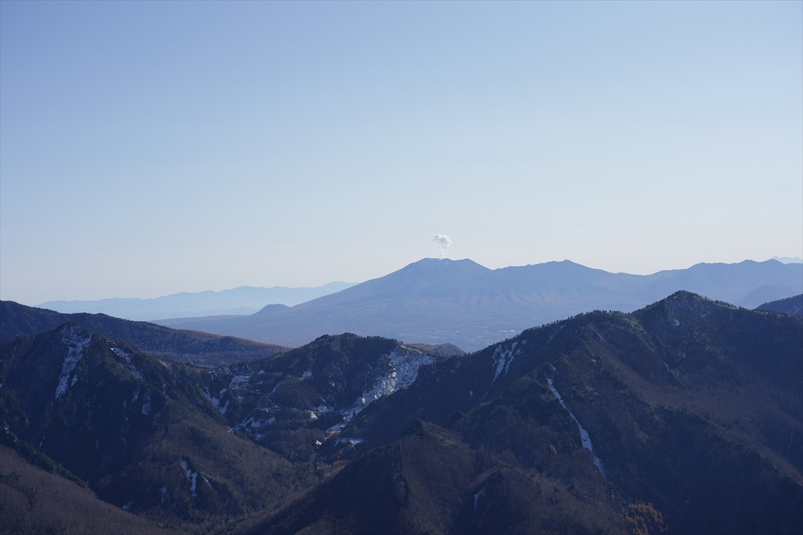 | 左奥から四阿山・根子岳 北アルプスの山並み・右端は針ノ木岳 笠ヶ岳からのパノラマ図解あり |