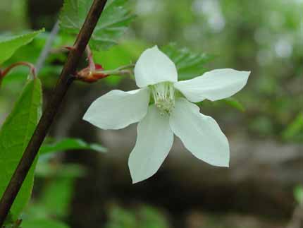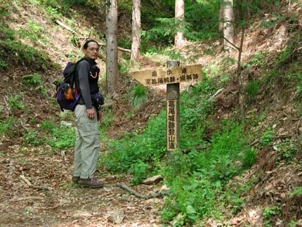 左手にヒノキの植林が現れるとほぽ九合目。 平坦な林に入って、左から福井コ−スが合流。