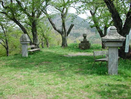 坂城町の展望を梢越しに楽しみながら、上り着いた小さな台地は葛山城の三の郭跡。