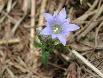 草もない砂礫の尾根道(写真6)をたどると、左手の姫城跡(横吹山)からの尾根が合わさる。