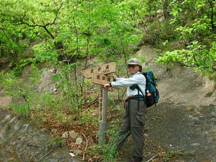 神社裏の遊歩道がゆっくりと山腹を上って行く。二百メ−トルほどで、右へ「近道登山道」が分かれる。