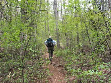 ここから幅の広いゆるやかな尾根が五里ヶ峰へ続く。 アカマツ、カラマツの植林地だから展望は望めない。