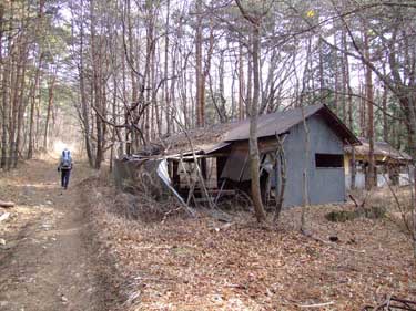 | B信玄の棒道のごとく真っ直ぐな登山道と廃屋 | C林道を横切る | |||