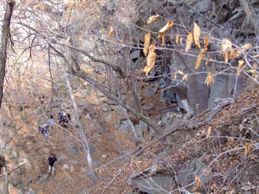 | 女岩を右に巻いて女岩の上部に出る | 女岩の真上を歩くので 石を落とさないように注意して上る |