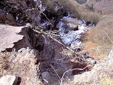 | 足下から崩れている爆裂火口跡 | 北側斜面の爆裂火口跡 | |||
