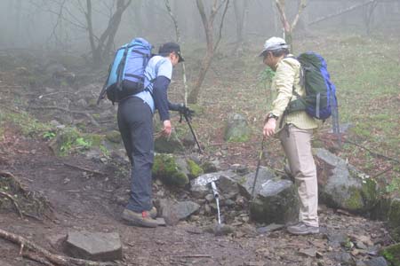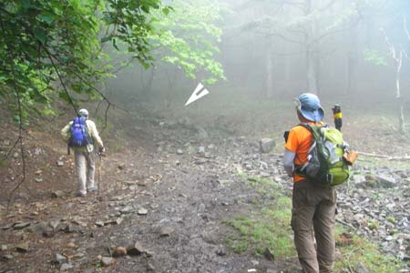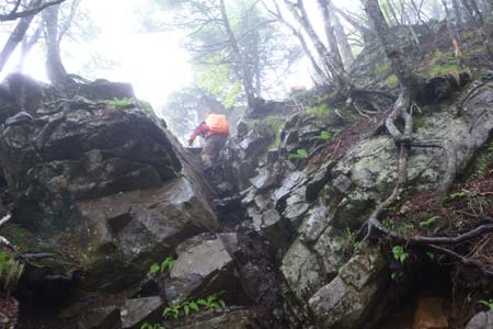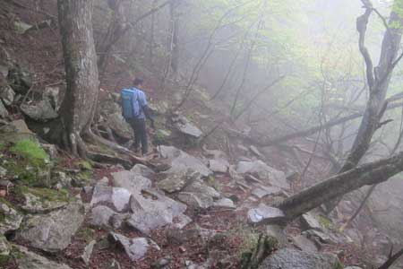 雨乞岩を通過後の岩稜は富士山や甲府方面の展望適地なのだが・・・(残念) |