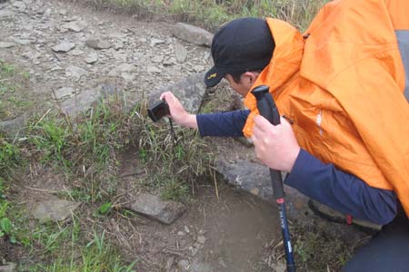 雨が降り出しカッパ着用 |