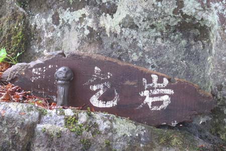 大岩で雨宿り(木彫り仏) |