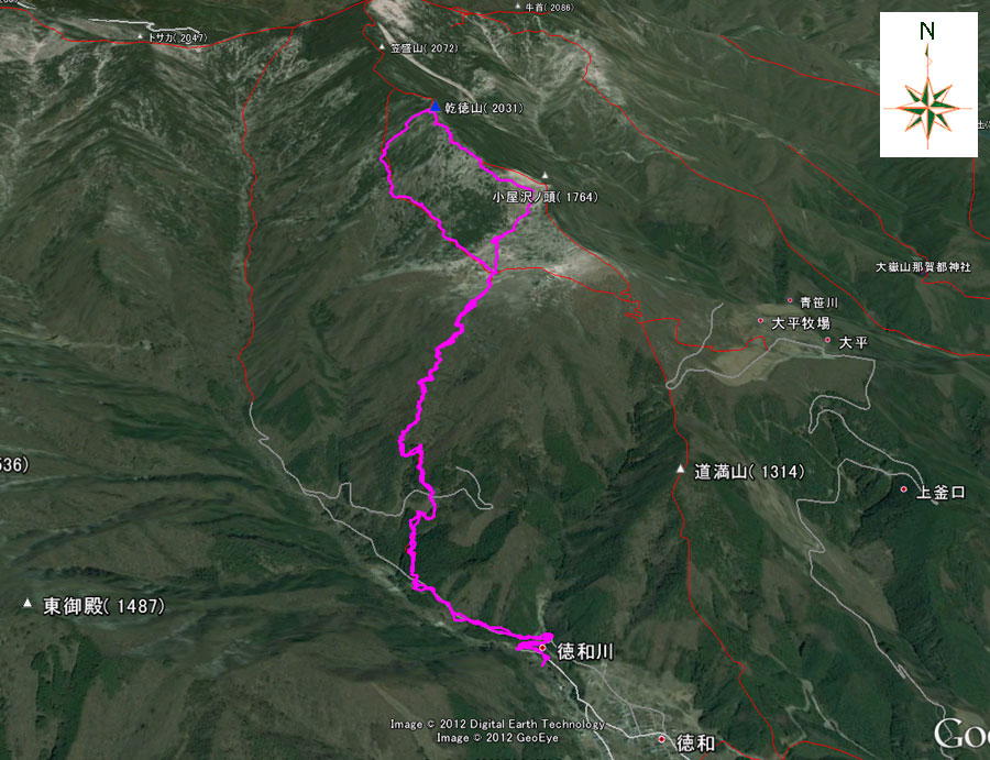 乾徳山グーグルアース鳥瞰図