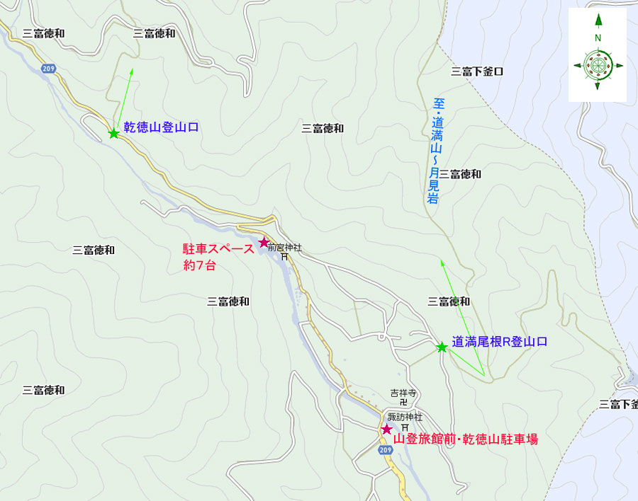乾徳山登山口&駐車場・拡大MAP
