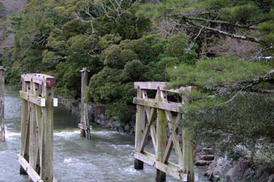 | 宇治橋の架け替え 宮大工技術継承を兼ねて20年に一回、建て替えや架け替えが行われている |