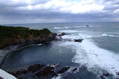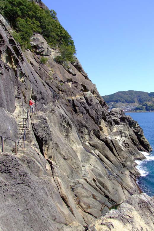 | その昔、弘法大師と天邪鬼が串本から大島へ橋を架ける賭をしたという伝説の奇岩群 | ||||