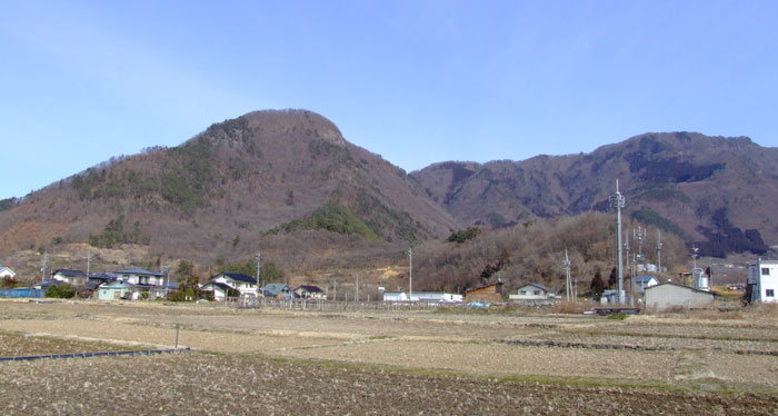 | 尼巌山(左)と奇妙山(右)の全景 2007.2.25松代温泉南側から撮影 | ||||