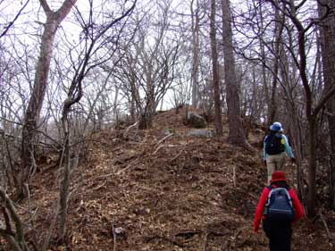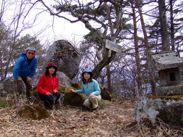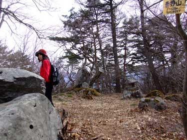 | ここを(堀切)上れば山頂だ | 山頂には沢山の石碑が置かれている | |||