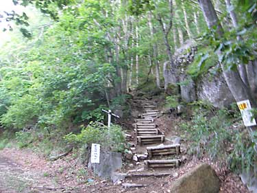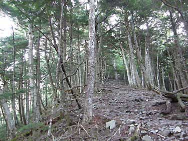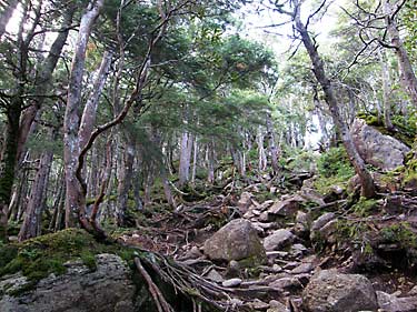 丸山まで続く石ゴロ道の急登/石ゴロというより岩ゴロか? |