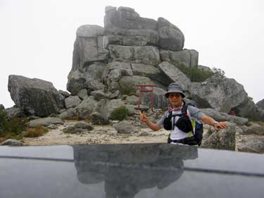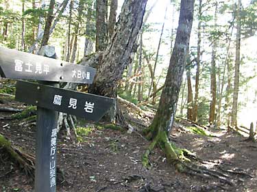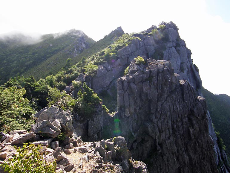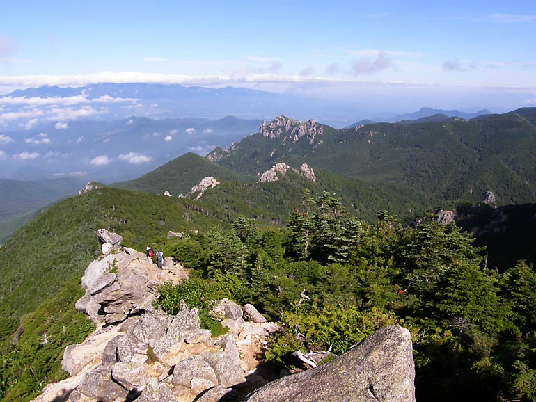 ポツンと頭だけを見せる富士山(画面中央) 岩稜部より |