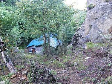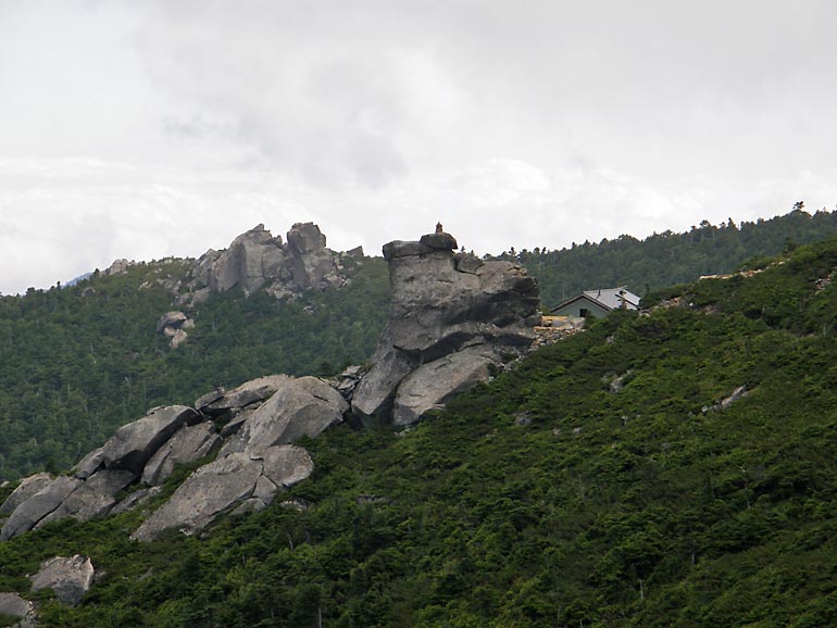 金峰山小屋と奇岩群/岩稜部より望遠撮影 |