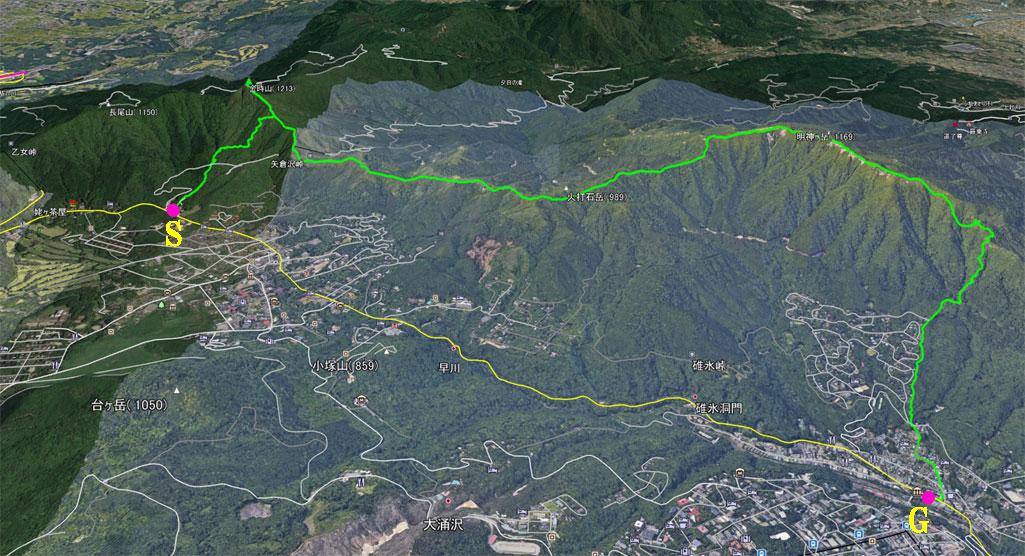 金時山からうぐいす茶屋までの激下りがもったいな〜い! 誰か向こう側までワイヤーを架けてくれないかなぁ〜(笑) |