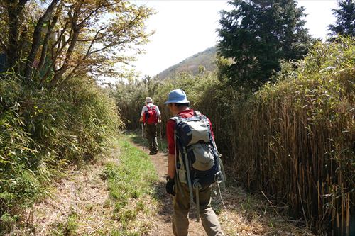 うぐいす茶屋通過後はひたすら笹原道を進む |