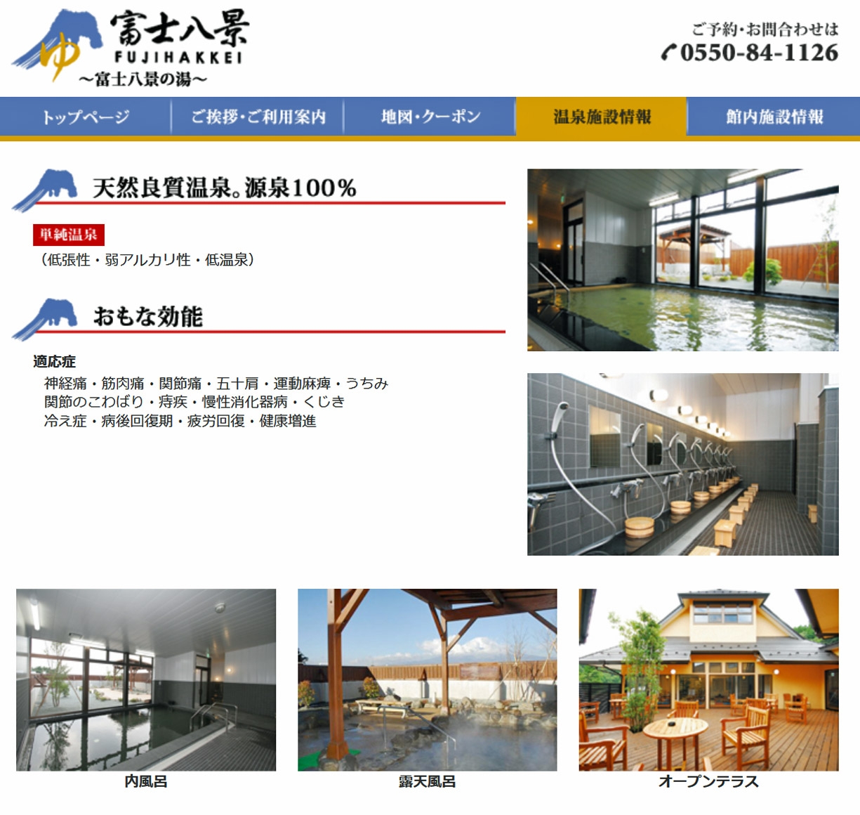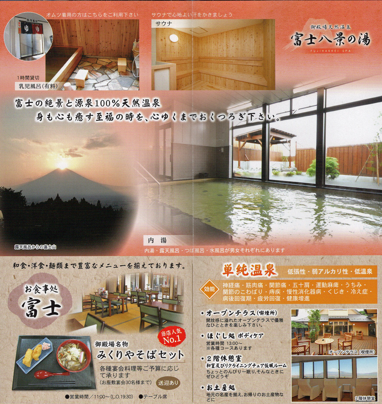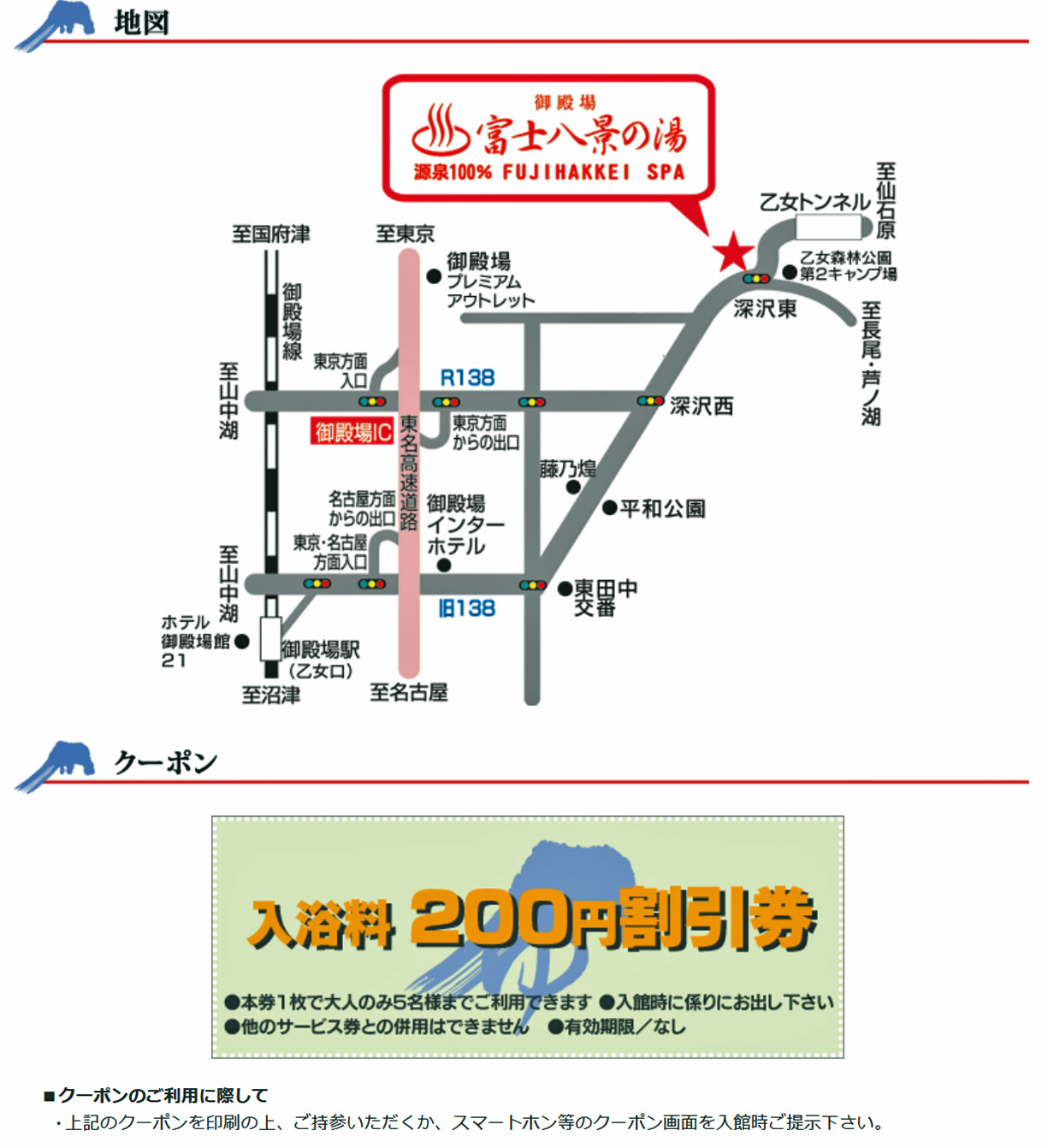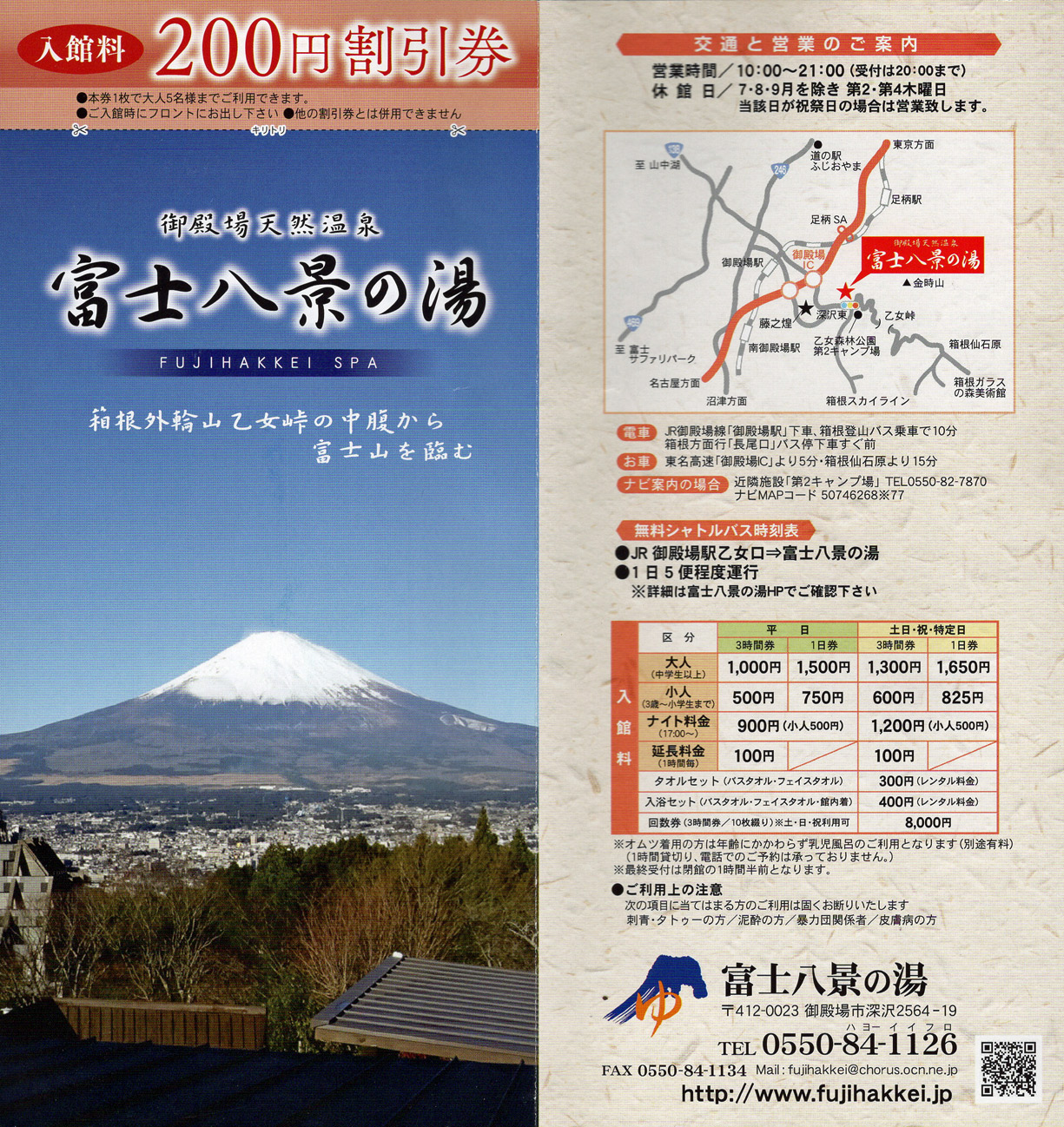 | 富士八景の湯公式ホームページに割引きクーポン券記載あり | ||||