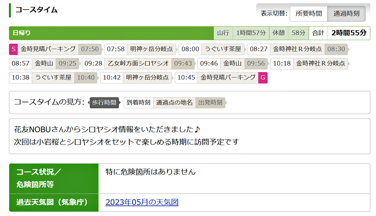 | 《金時山コースタイム他》 写真撮影時間20分〜100分含む |