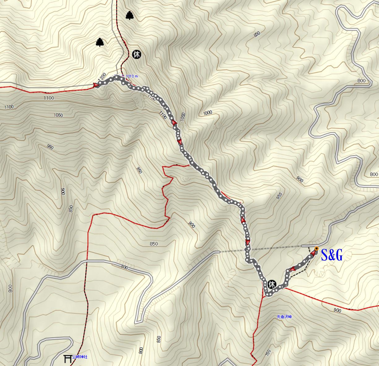| 金時山ルート地図 (計曲線 50M 主曲線 10M) |