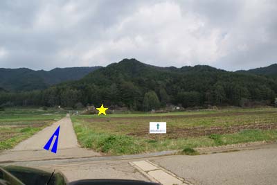 | たんぼ道を進む・駐車場(星印) | 7〜9台駐車可・簡易トイレ有 | |||