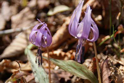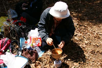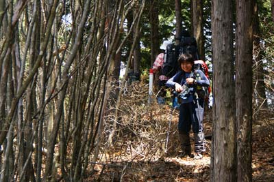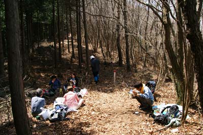| 女坂はカタクリの群生地 | 山頂は狭かったのでブナの分かれまで下りてランチタイム | |||