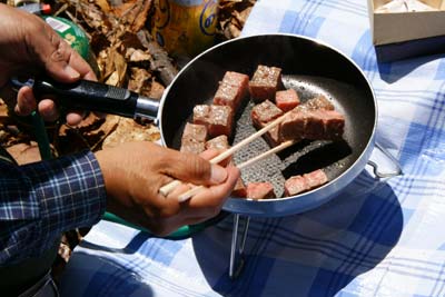 | ↑ ↓ 岐阜軍団のランチタイムは超豪華版 ↑ 遠慮知らずのひらさん、持参弁当を食べる前にお腹イッパ〜イ ! ご馳走様でしたm(_ _)m |