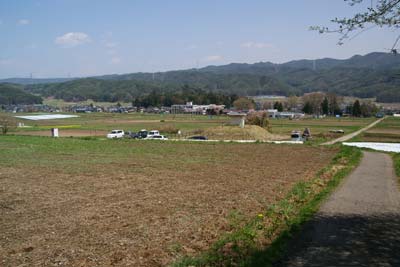 | 振り返ると 駐車場(手前) 両小野中学校(奥) |