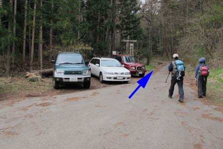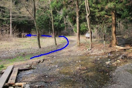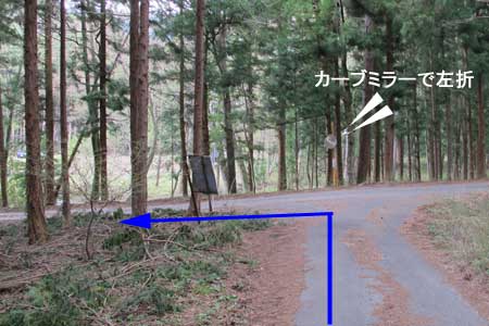 | 山の神社を下って林道にでたら右折 | カーブミラーを目印に左折すると3分程で駐車場に着く | |||
