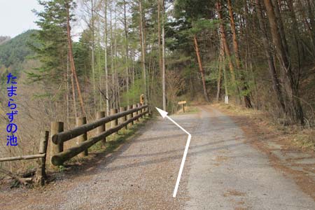 | たまらずの池 | たまらずの池を通過後に左へ(指導標あり) | |||