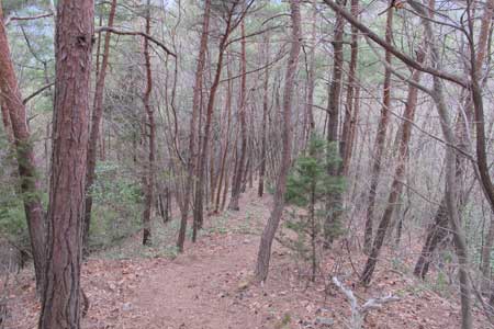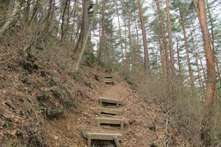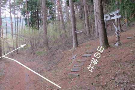 | 赤松林の急坂を下ると → | 山の神社 | |||