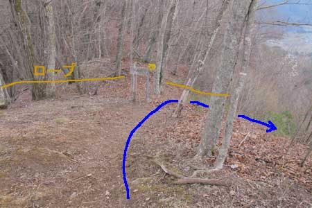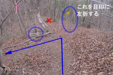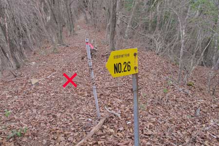 | 26番鉄塔指導標地点で左折して山腹の巻き道へ入る | ||||