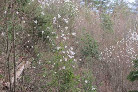 | 全行程でコブシを見ることができる。 タムシバとの説もあるが自然園MAP記載のコブシに準ず |