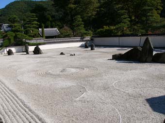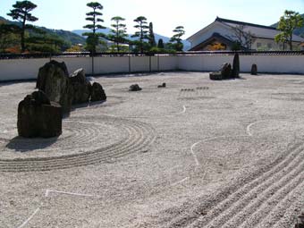 一木一草を用いない枯山水の庭としては東洋一の広さをもっている。 |