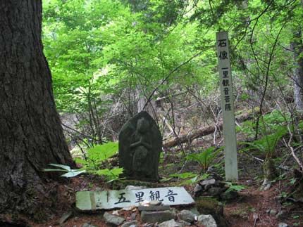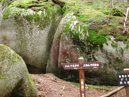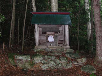 十文字峠への道を左に見て、林道を直進すると右側に大山祇神社ある。登山地図には林道終点駐車