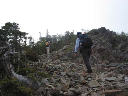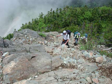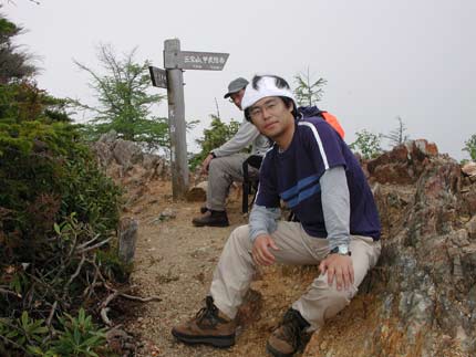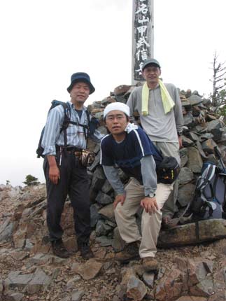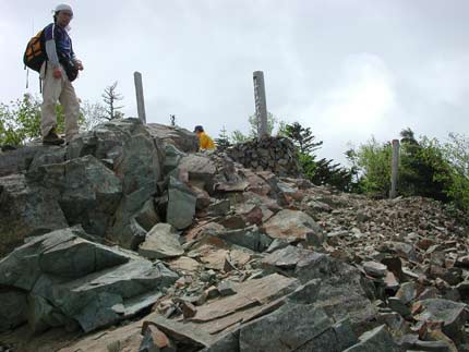 左に折れ最後のガレ場を急登すると甲武信ヶ岳の山頂に着く。 mikio