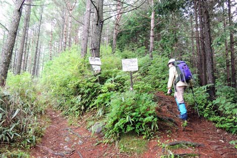 | 前夜の雨にも関わらず水はけが良く歩きやすい登山道 | 烏帽子岳分岐点・下 |