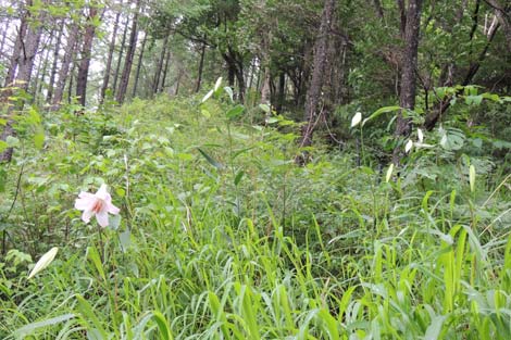 | 松茸試験栽培区域の為シーズン中の入山は要注意か・・・ | お目当てのササユリと初対面♪ | |||||