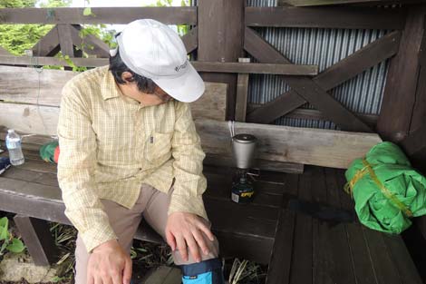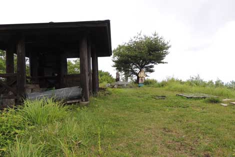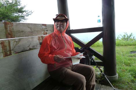 | 山頂に着くなり大雨と強風の手厚い?洗礼をうけ山頂東屋に待避(約2時間) | ||||||