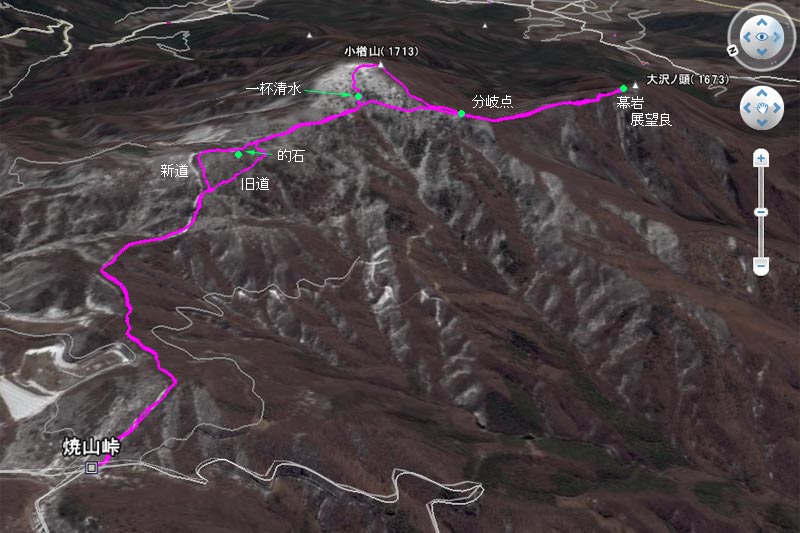 焼山峠駐車場標高/1530M 標高差/183M 総歩行距離/7624M |