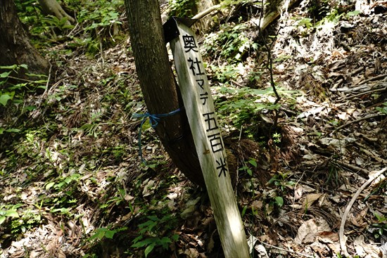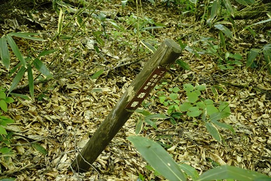 | 分岐点から2㍍ほど先の巨木に目立たない指導標(三角点まで200㍍入口)あり | ||||