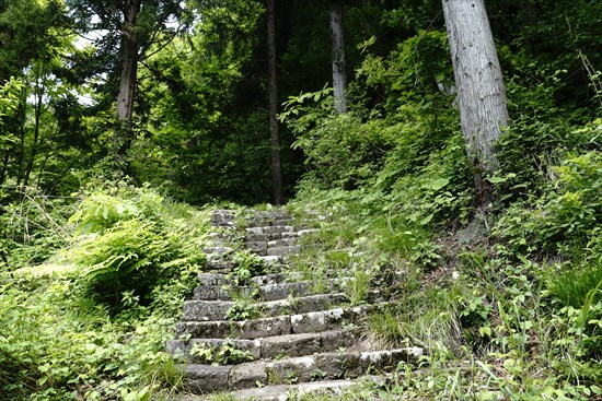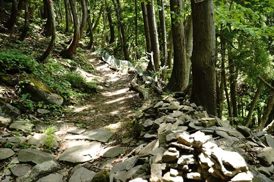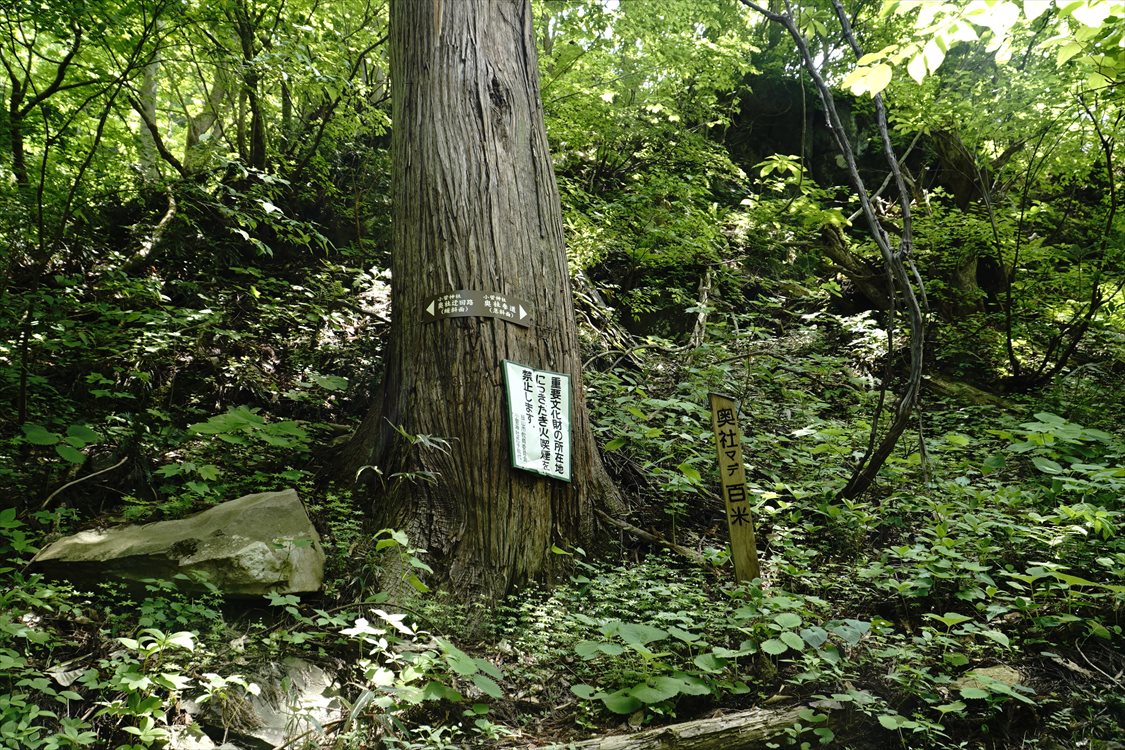 | 奥社(下)分岐点 左・緩斜面 右・参道急斜面 |