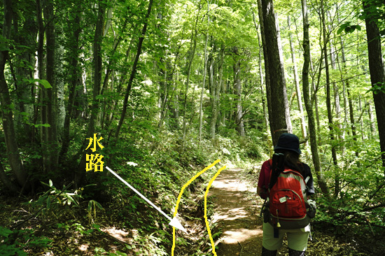 | この指導標地点からブナ林の森林セラピーロードになる♪ | ||||