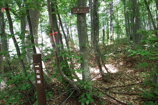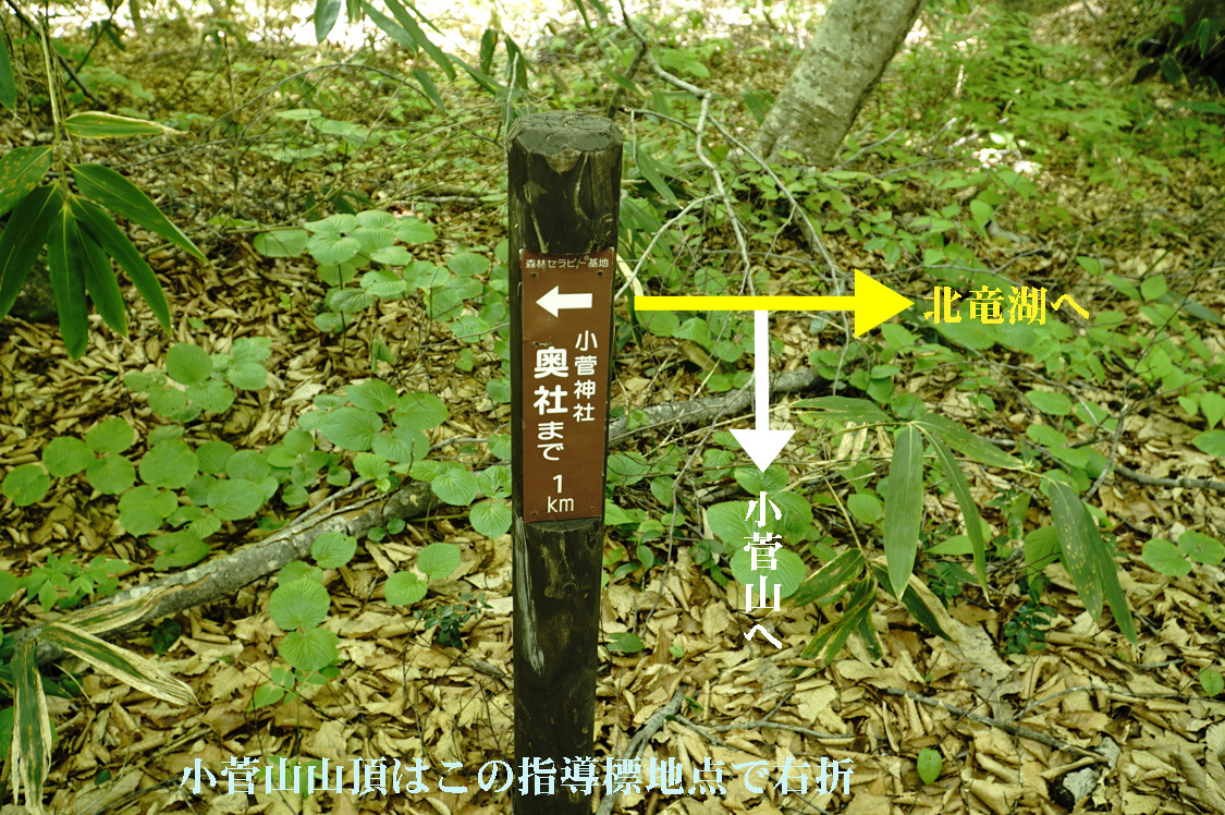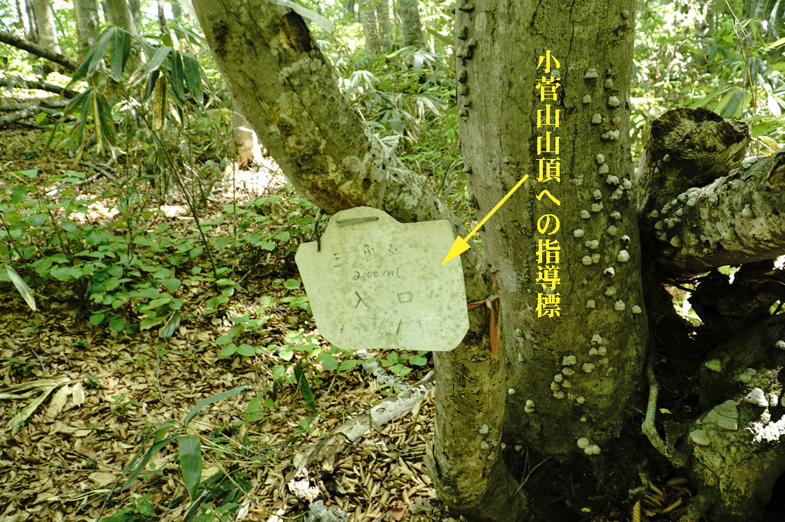 | 小菅山山頂分岐点 我々はこの分岐点を見落として往復10分以上のタイムロスでした |